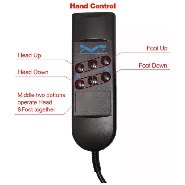 - 6 knoppen voor hoofd en voetdeel verstelling(ook tegelijk).