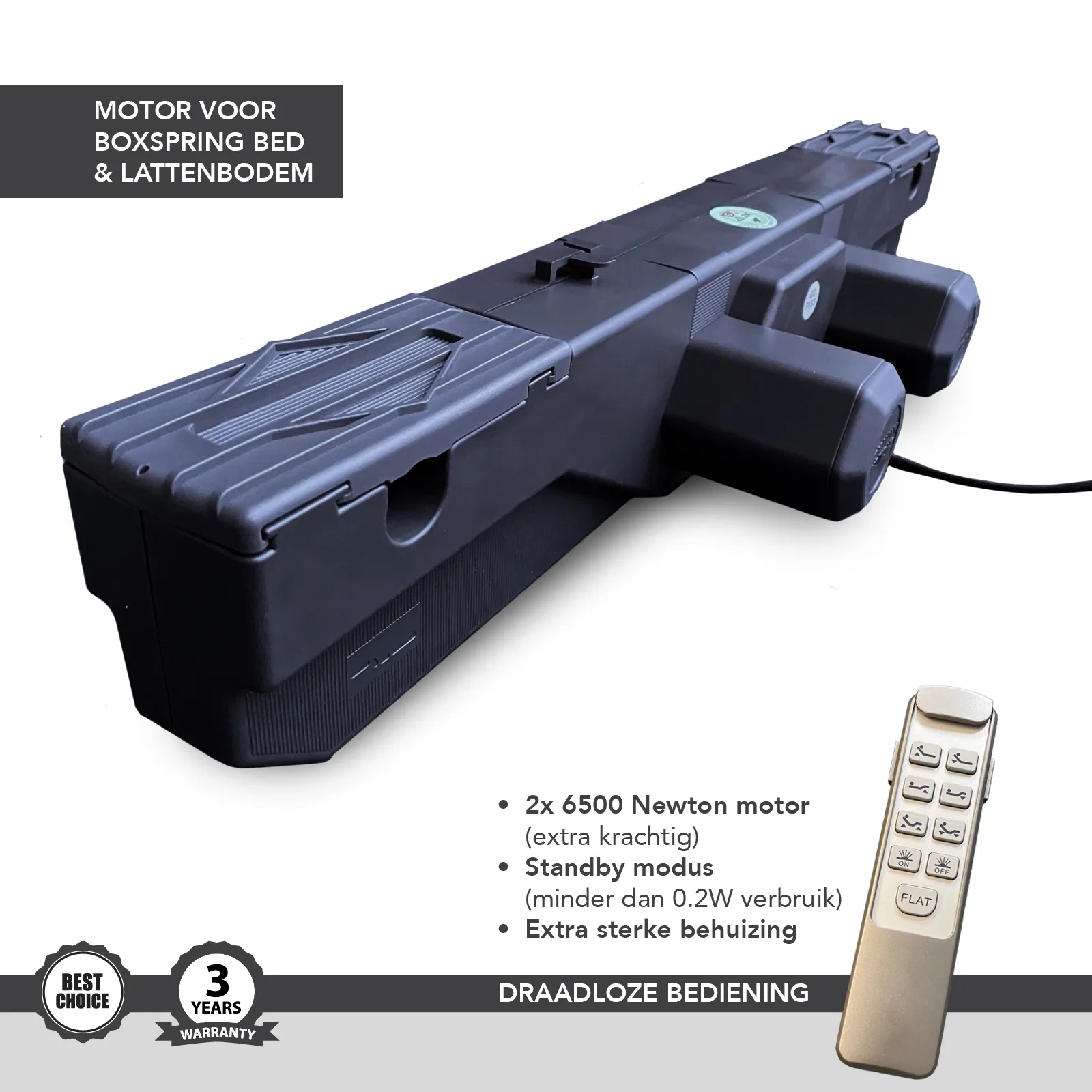 Motor voor boxspring-bed of lattenbodem, per stuk, Zeer zware kwaliteit en 2 motorig inclusief luxe RF draadloze afstandsbediening