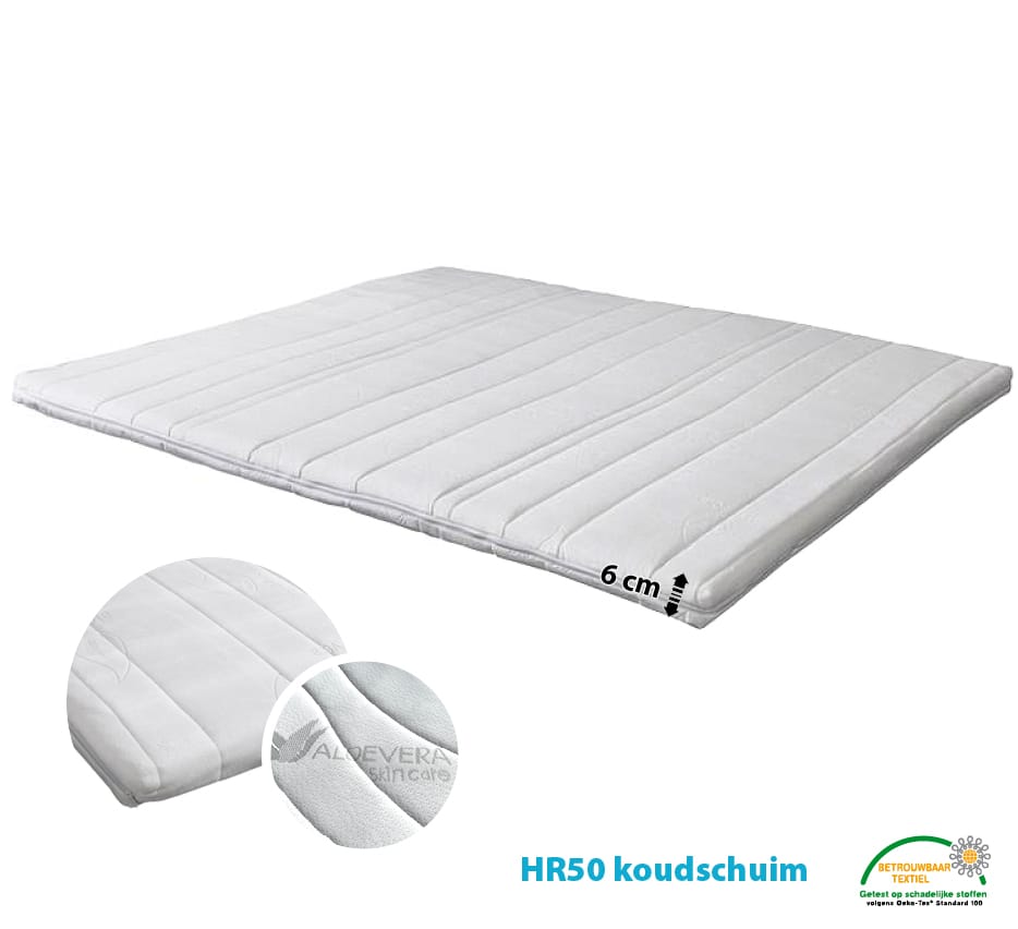 Topper HR 50 koudschuim is een topdekmatras met speciale Aloa Vera hoes en totale dikte van 6 cm in wasbare hoes